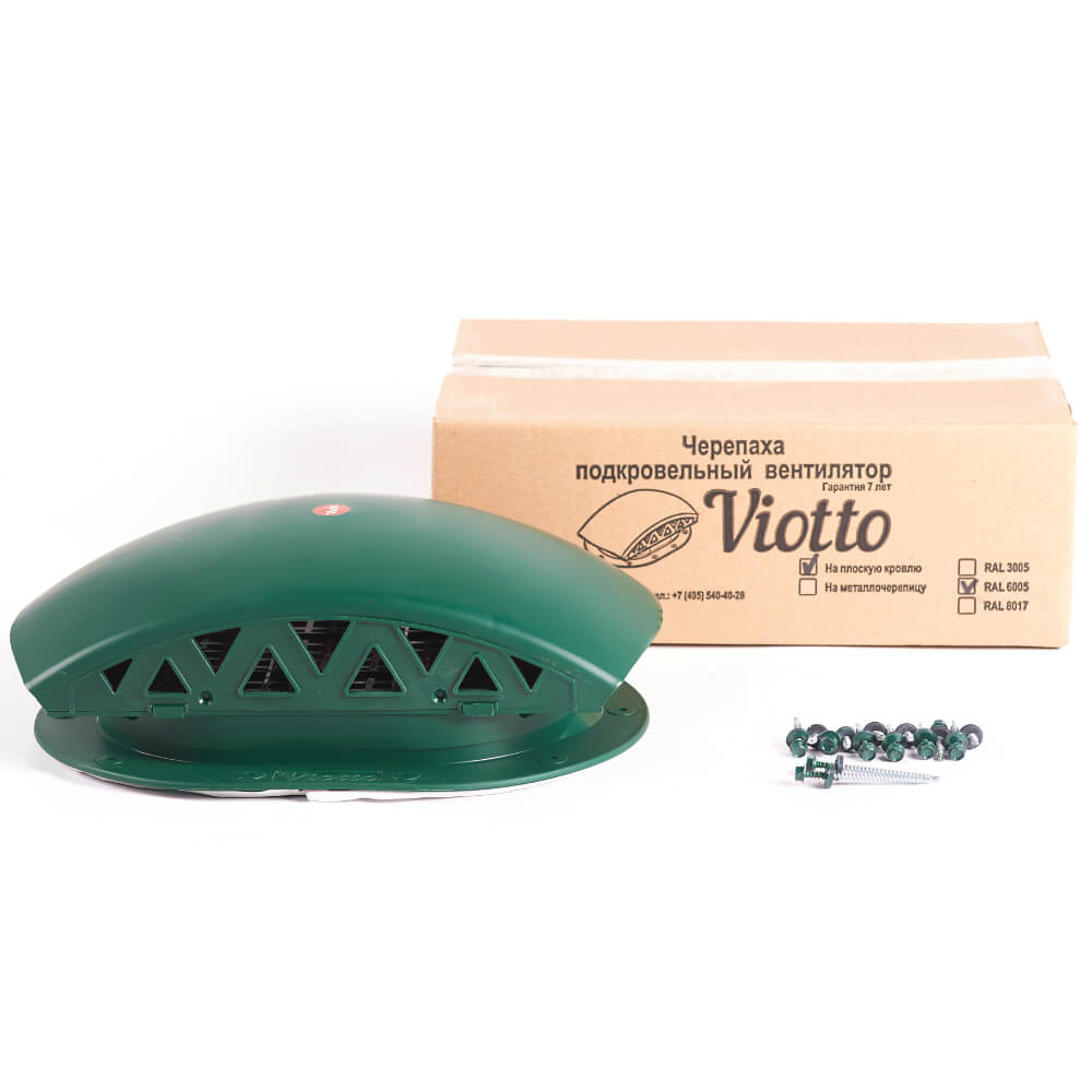 Подкровельный вентилятор "Черепаха" Viotto RAL 6005 Зеленый Мох для готовой мягкой и фальцевой кровли в Актобе