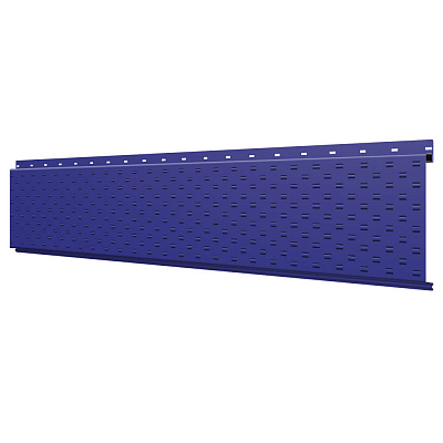 Линеарная потолочно-стеновая панель с ПЕРФОРАЦИЕЙ для вентиляции цвет RAL5002 Синий Ультрамарин применяется в качестве софитов для подшивы крыши, наружной и внутренней отделки потолков, стен, фронтонов фасада дома в Актобе.
