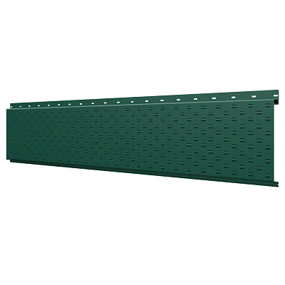 Линеарная потолочно-стеновая панель с ПЕРФОРАЦИЕЙ для вентиляции цвет RAL6005 Зеленый Мох применяется в качестве софитов для подшивы крыши, наружной и внутренней отделки потолков, стен, фронтонов фасада дома в Актобе.