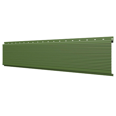 Линеарная потолочно-стеновая панель РИФЛЕНАЯ усиленная цвет RAL6002 Зеленый Лист применяется в качестве софитов для подшивы крыши, наружной и внутренней отделки потолков, стен, фронтонов фасада дома в Актобе.