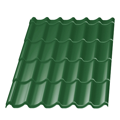 Металлическая черепица Меркурий цвет RAL 6002 Зеленый Лист имеет профиль внешне на кровле напоминающий классическую керамическую черепицу. Меркурий — это обновленный аналог профиля металлической черепицы для кровли крыши. Форма профиля имеет богатый внешний вид напоминающий небольшие набегающие волны. Лучшие показатели герметизации сделали профиль Меркурий гарантом стабильной и долговременной службы на крышах в Актобе. Данный профиль отличается не только своим качеством и практичностью, но и благородным внешним видом.