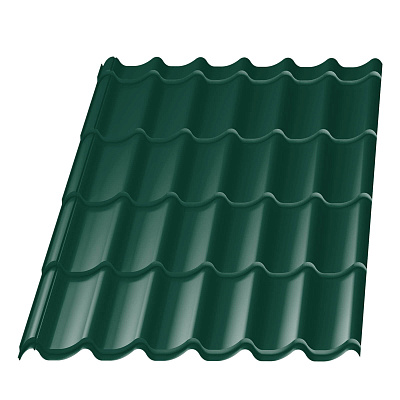 Металлическая черепица Меркурий цвет RAL 6005 Зеленый Мох 0.5мм ГОСТ имеет профиль внешне на кровле напоминающий классическую керамическую черепицу. Меркурий — это обновленный аналог профиля металлической черепицы для кровли крыши. Форма профиля имеет богатый внешний вид напоминающий небольшие набегающие волны. Лучшие показатели герметизации сделали профиль Меркурий гарантом стабильной и долговременной службы на крышах в Актобе. Данный профиль отличается не только своим качеством и практичностью, но и благородным внешним видом.