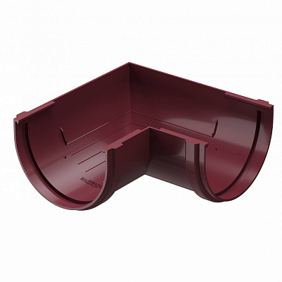 Угловой элемент желоба универсальный ДЕКЕ STANDARD d120мм 90 градусов цвет RAL 3005 Красный в Актобе. Угловые элементы устанавливаются как на внешних, так и на внутренних углах кровли и предназначены для соединения желобов.