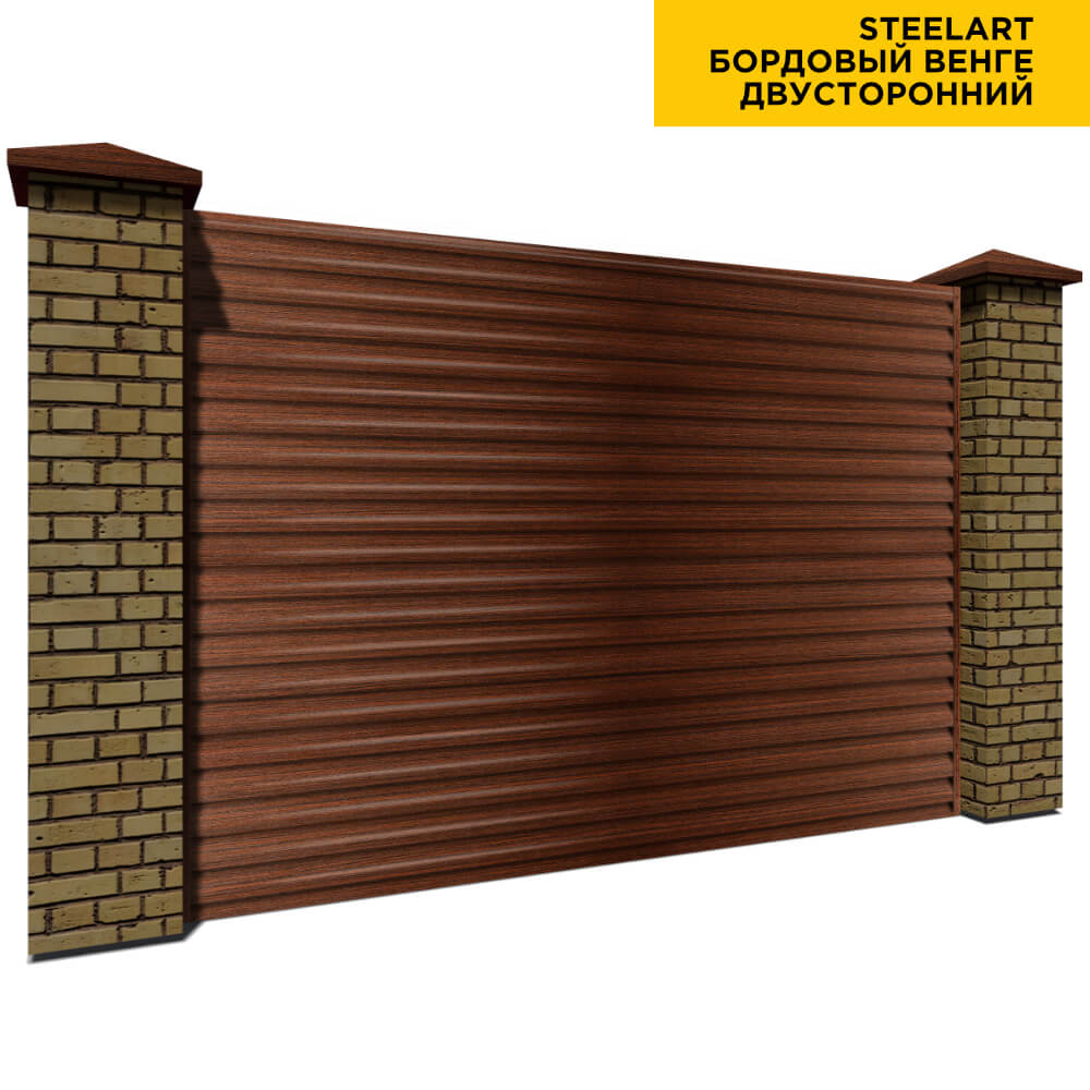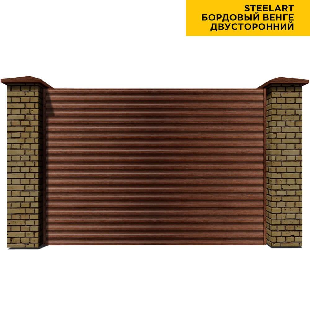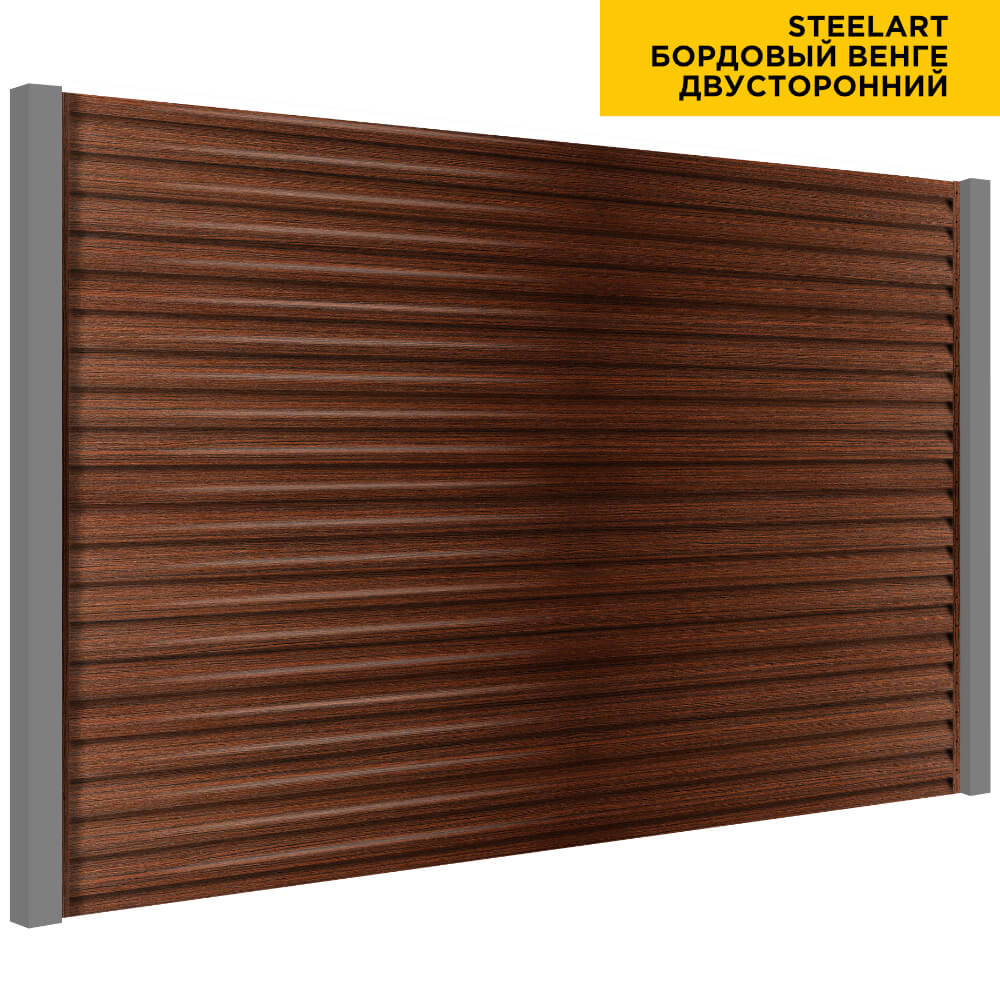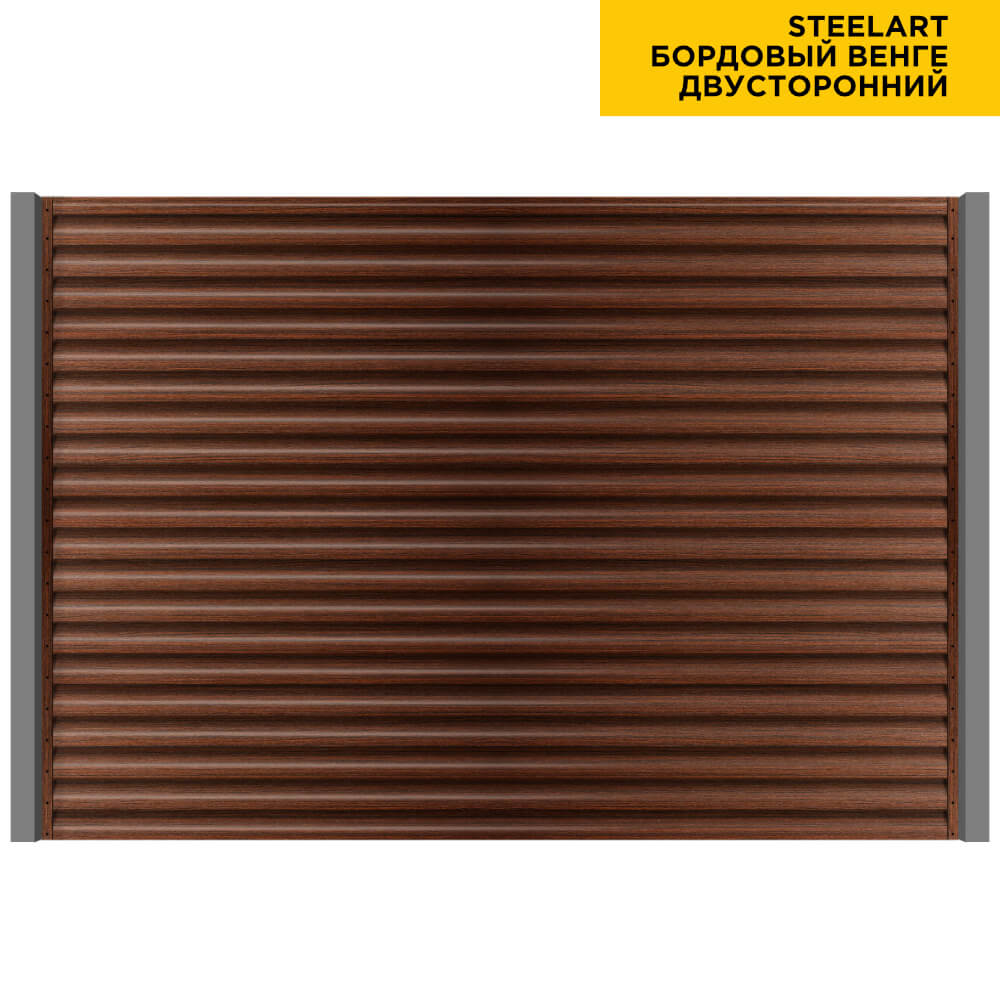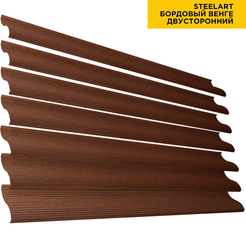 Ламель Еврожалюзи металлическая S-образная, цвет под дерево Бордовый Венге SteelArt Россия двухстороннее покрытие, длина любая кратно 1см под заказ - для забора-жалюзи, беседки, перголы в Актобе